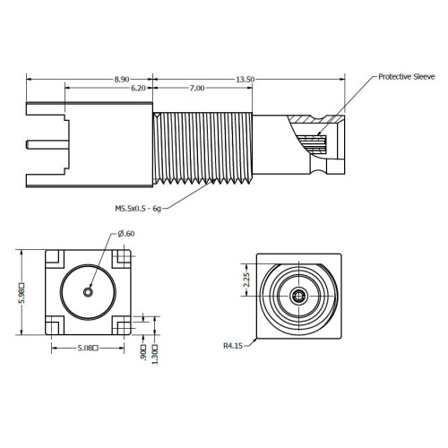 Home » Connectors » Coaxial Connectors » DIN 1.0 / 2.3 » XGS-06-TB27-NNLU – Top Entry DIN 1.0/2.3 Bulkhead Connector (Long Body) with Protective Sleeve