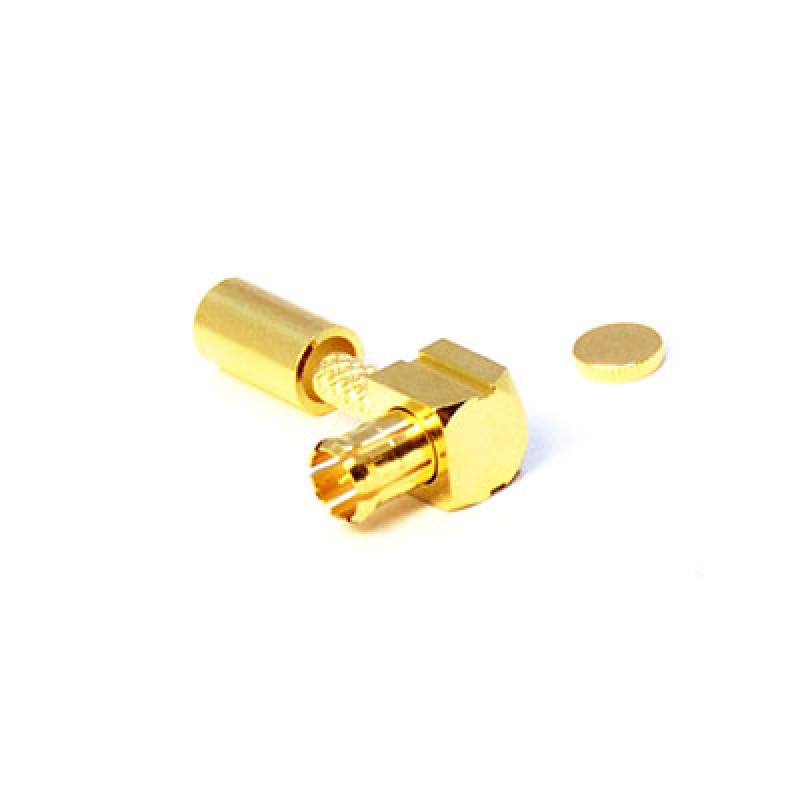 The XJT-A000-GGAF is a right angle cable mounted MCX plug which is suitable for cables in the group AF which includes RG179. The connector is compatible with frequencies up to 3GHz.