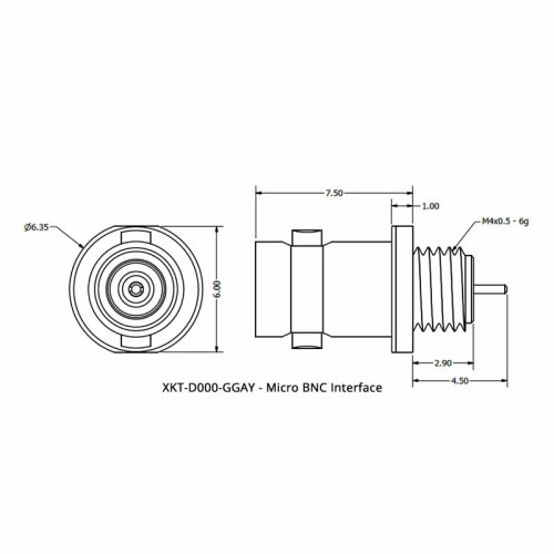 The XKT-D000-GGAY is a Micro BNC Interface for use with one of the changeable interface connector bodies.