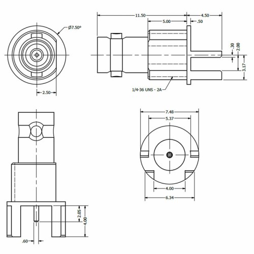 The ANP-C4-CSN-1.50 is a 4 slot circular Micro BNC nut which is 1.5mm thick and made from mild steel with a nickel plating. This nut is for use with single port Micro BNC with a thread size of 1/4-36 UNS – 2B. The nut can also be used with our magnetic Micro BNC nut driver, TLG 121.