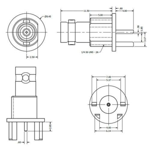 XPS-12-EB17-GGO – Edge Mounted Micro BNC Bulkhead Socket