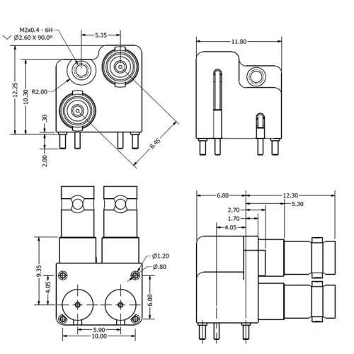 Our range of 12GHz Precision Micro BNC coaxial connectors are optimised for 4K/Quad HD and Ultra HD Broadcast applications whilst also meeting the JIIA CXP-12 specification. These high performance connectors allow you to achieve a 12GHz channel in one single connection. The XPS-12-RB20-GNA is a Right Angle Slim Body PCB Bulkhead Micro BNC socket for PCB thicknesses of 2mm. The connector has been specifically designed to work in conjunction with our XPS-12-RA20-NND, matching the low profile of the connector to offer an additional port.