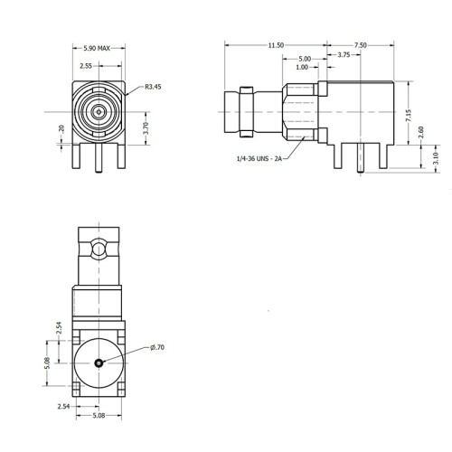 XPS-12-RB26-GNA – Right Angled Micro BNC Connector (slim body)