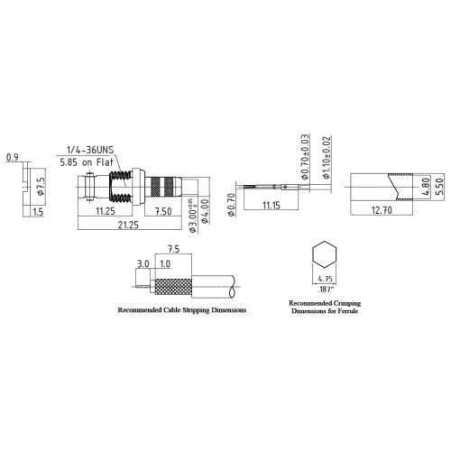 mateable with any standard Micro BNC connector, but optimum performance is achieved when PCB mounted styles are interfaced with these Cambridge Connectors 12GHz Micro BNC plugs, designed for use with 12GHz cable (such as Belden 1855A).