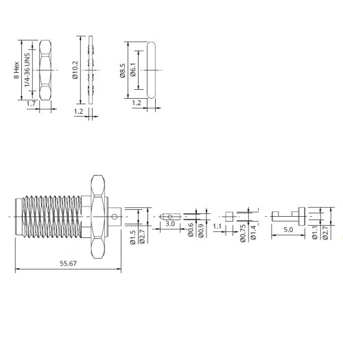Home » Connectors » Coaxial Connectors » SMA » ZCS-06-CST-GGAW-W – 6GHz SMA Cable Mounted Bulkhead Socket