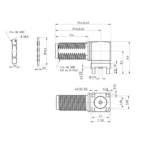 The ZCS-06-RB20-GGLN is a right angled bulkhead SMA socket which features a long thread to the front interface. The connector works up to a speed of 6GHz. The connector also features a surface mounted pin.