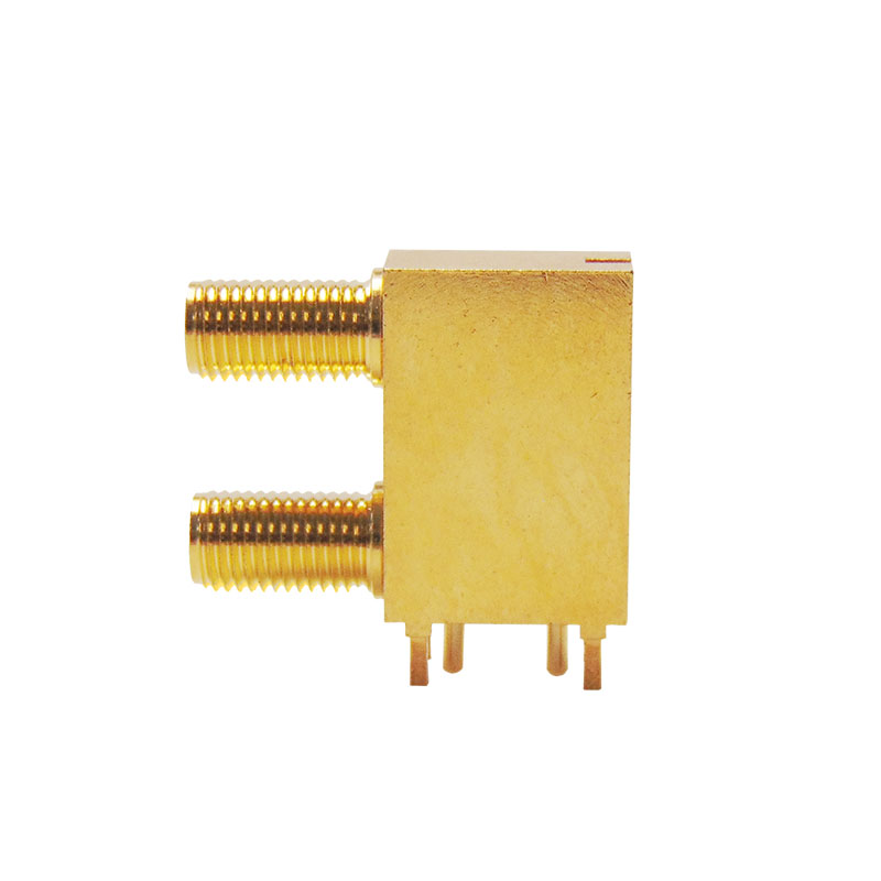 The ZCS-12-RB32-GGD is a dual port right angle PCB bulkhead mounted SMA connector which operates up to frequencies of 12GHz over a single channel. The connector has a dual through hole contacts and a 3.3mm leg length. The connector is supplied with nuts and washers.